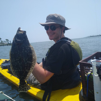 Our final day of fishing we decided to due a complete circumnavigation paddle of Brown's Island. We ended with over 8 miles of paddling on this day. The wind was much stronger than anticipated so we spend much of the day fighting the wind and not catching many fish until we got back into the mouth of Sleepy Creek when John hooked up with what would have been a keeper flounder had it been in season. Great three days of paddling!